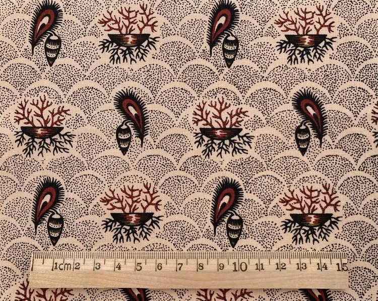 Tygbredden är 135 cm och priset är per decimeter, 100% bomull. Tyget trycks på Frösö Handtryck för Jamtli Butik.