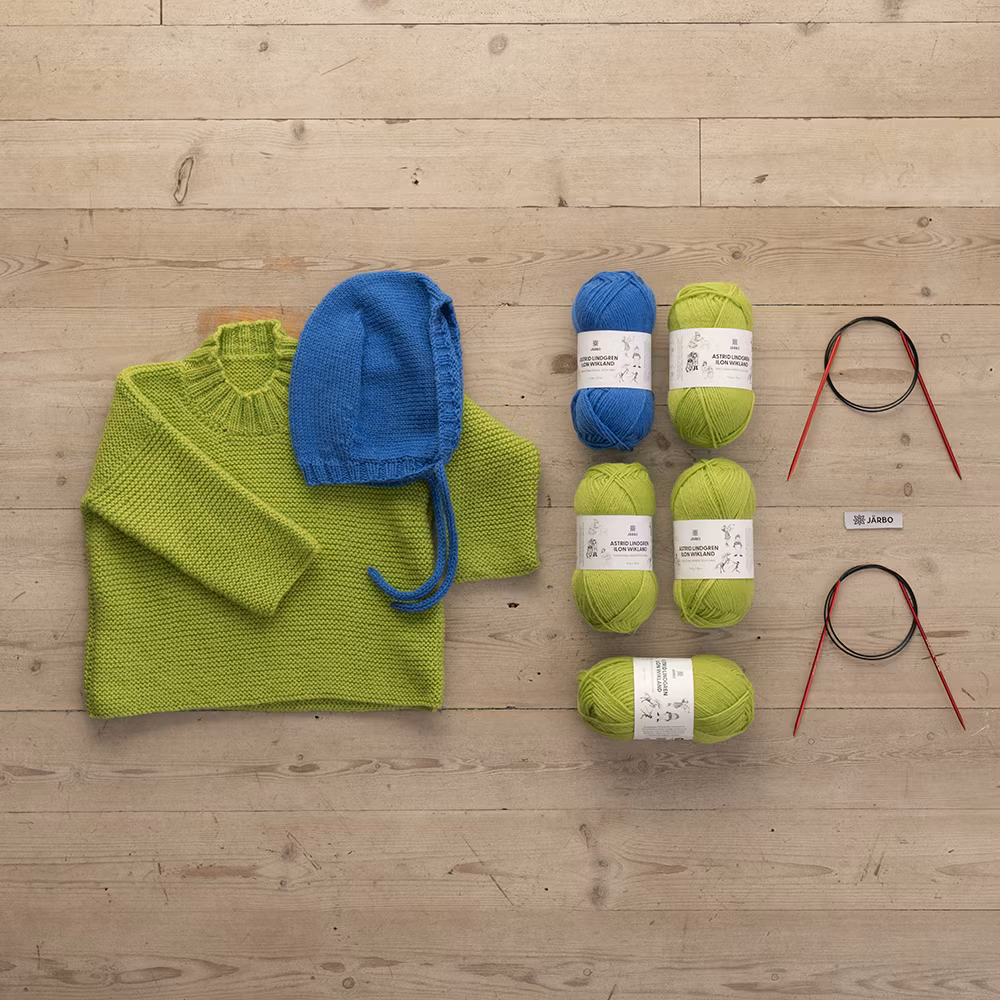 I våra kit från Astrid Lindgren & Ilon Wikland ingår garn, stickor och mönster, det är bara att börja sticka!